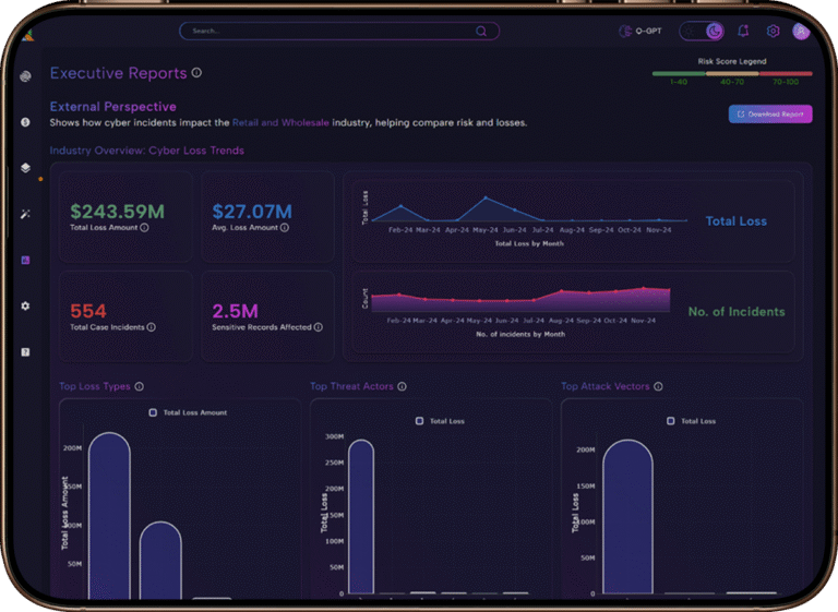 Tailored reports for CISOs, CROs, CFOs, and Boards — each view built for their priorities.