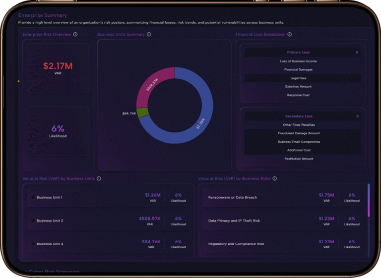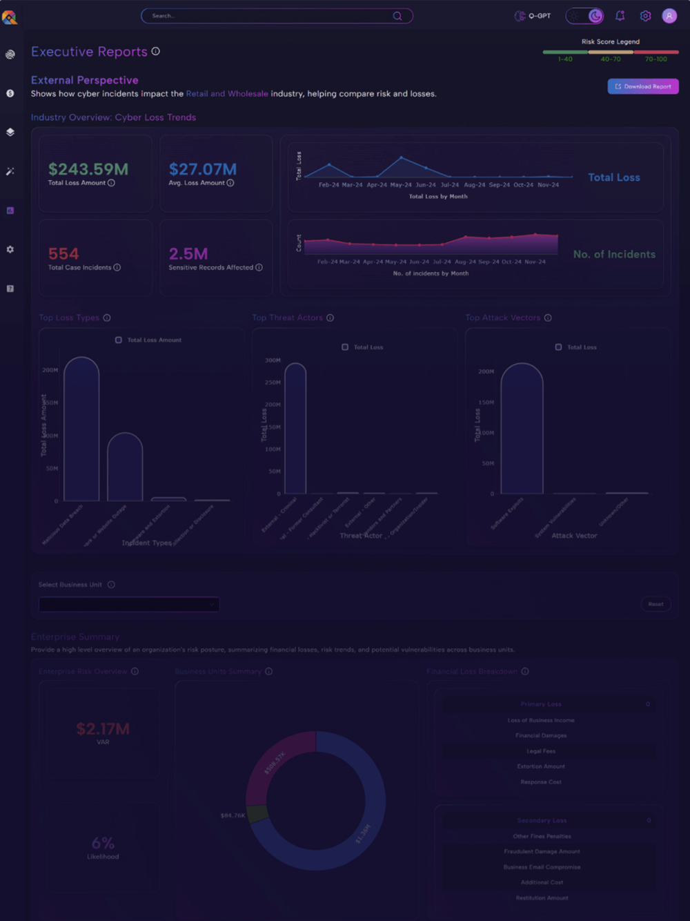 ransforms cyber, exposure, and loss data into dynamic, financial impact dashboards. -